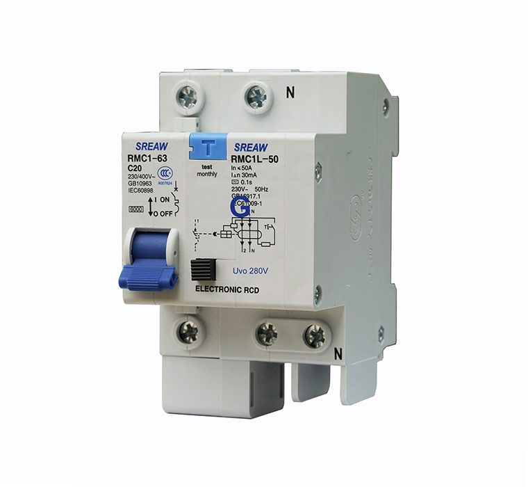 加裝于RMC1小型斷路器右側,對對地漏電、人體直接或間接觸電、線路過電壓等故障進行保護